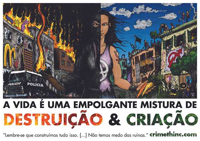 Preparamos um cartaz juntando imagem e texto de nossos antepassados, cristalizando a maneira como as gerações anteriores de anarquistas enxergavam a relação entre a resistência à ordem existente e a construção de alternativas à ela. Abaixo traçamos a história de cada elementos do cartaz.