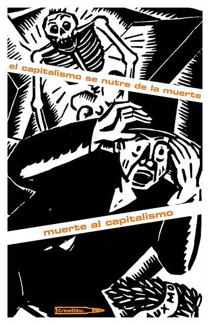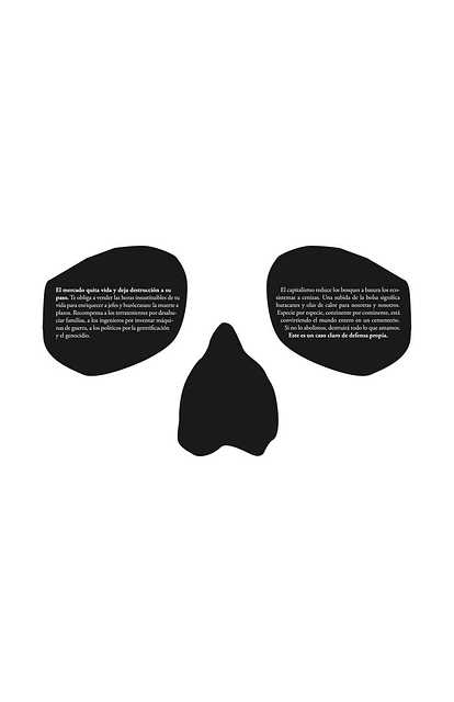 El mercado quita vida y deja destrucción a su paso. Te obliga a vender las horas insustituibles de tu vida para enriquecer a jefes y burócratass: la muerte a plazos. Recompensa a los terratenientes por desahuciar familias, a los ingenieros por inventar máquinas de guerra, a los políticos por la gentrificación y el genocidio.