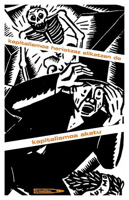 Merkatuak bizia kentzen du eta suntsipena uzten du. Zure bizitzako ordu ordezkaezinak saltzera behartzen zaitu nagusiak eta burokratak aberas daitezen: heriotza epeka. Lurjabeak familiak utzarazteagatik saritzen ditu, ingeniariak gerramakinak asmatzeagatik, politikariak gentrifikazioagatik eta genozidioagatik.
